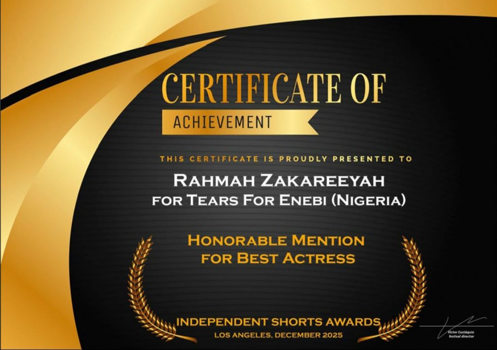 Reacting to her award, Rahama Zakareeyah said portraying Enebi was both challenging and rewarding, noting that the role represented countless women whose voices often go unheard.